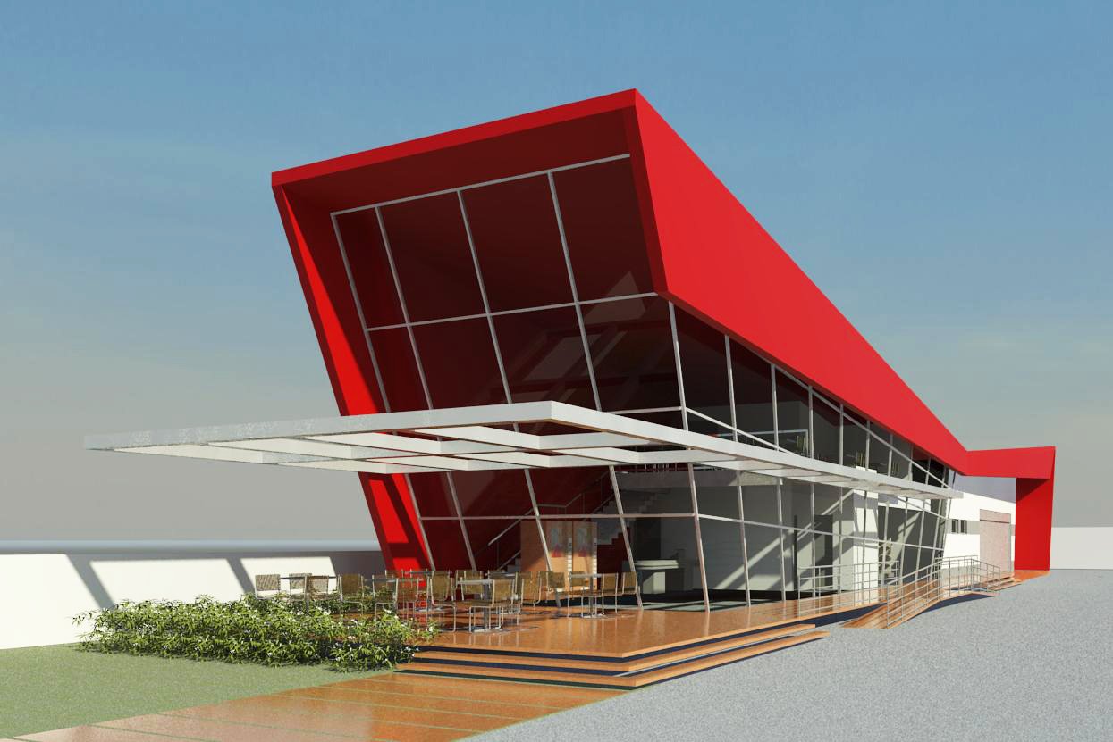 Por estar implantado em via de alto fluxo, o projeto adotou uma linguagem visual mais marcante, com predominância do vermelho na comunicação visual e fachadas. A composição arquitetônica privilegia a visibilidade e o acesso rápido aos diferentes serviços, garantindo fluidez na circulação de veículos e pedestres. Funcional, compacto e visualmente chamativo, o centro comercial foi pensado para otimizar o uso do terreno e se destacar no contexto urbano em que está inserido.